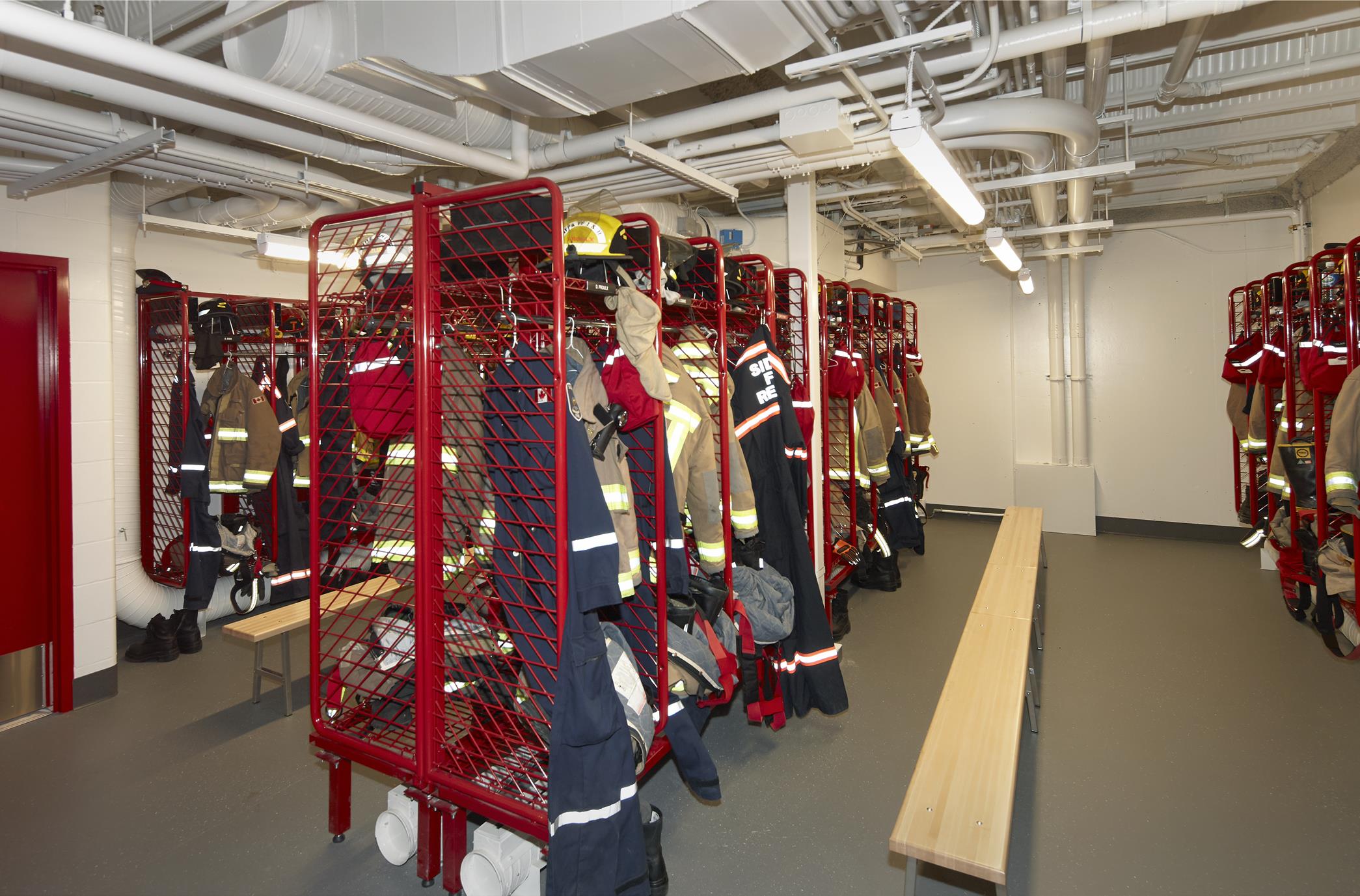 Additionally, a three-storey training tower, administrative offices and meeting rooms, crew quarters and gym, kitchen and outdoor space for the staff and the volunteer fire department members.