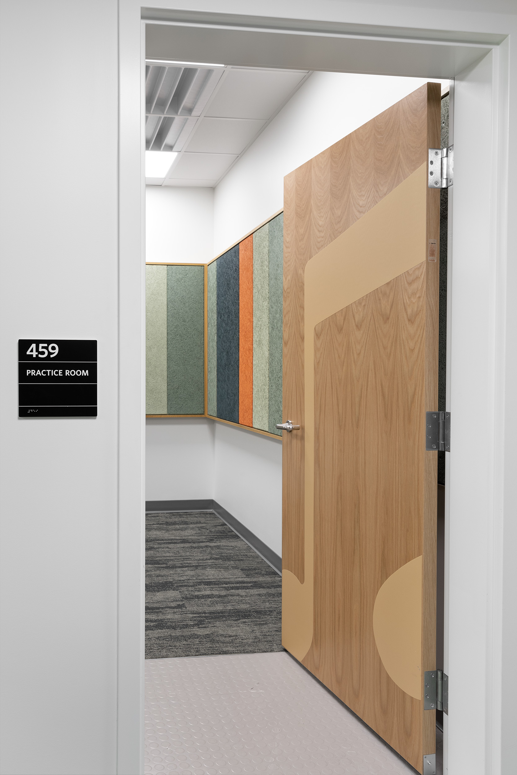 This project involved renovations to portions of the first, second, and fourth floors of the Music Building at the University of British Columbia (UBC). Scope includes select demolition of partitions, finishes, millwork, mechanical, and electrical systems to accommodate a new music library on Level 1, reconfiguration and refresh of the Level 2 administration offices, and construction of a new gender-neutral washroom, classroom, and practice rooms on Level 4. Practice rooms require sound isolation from the adjacent spaces, with one another requiring isolation at walls and doors and acoustic treatment within. Unusually high partitions were required in some spaces, as slab to slab heights varied widely from 9′ at Level 1, to 19′ at Level 2, and 12′ at Level 4. This project was completed in June 2022.Â